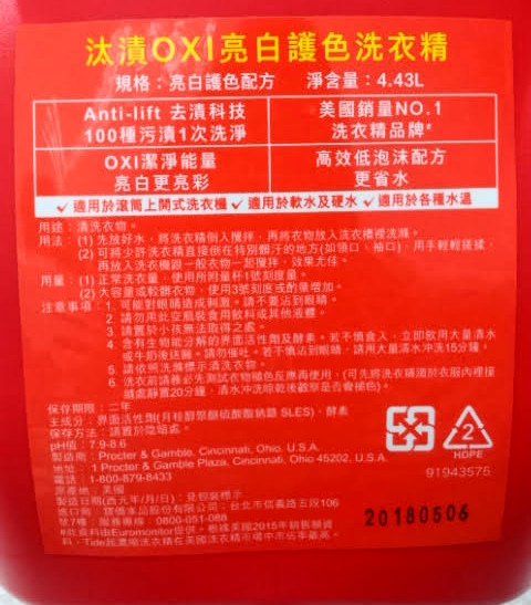 今天要推薦洗衣精給大家~~這瓶{升級版}--【汰漬 Tide】OXI亮白護色洗衣精!!