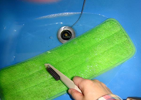 加少許清潔劑再用的[軟刷]與[鋸齒邊刷]清洗拖布