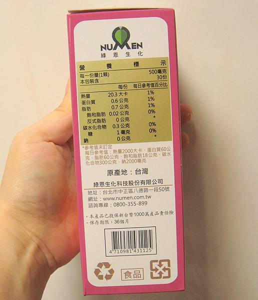 謝謝【女人知己試用大隊】提供的–NUMEN綠恩生化-紅花椰油窈纖膠囊