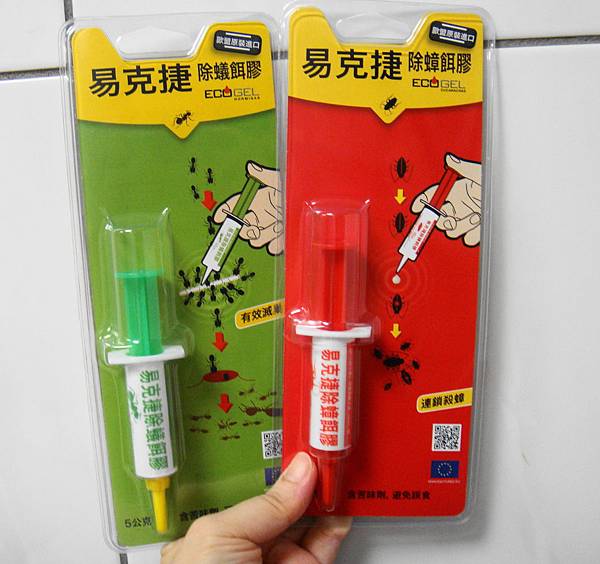 紅色外封是「除蟑餌膠」,綠色是「除蟻餌膠」