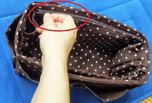 咖啡色水玉點的袋中袋~比單色更活潑俏皮(弄髒也不明顯 ^^)