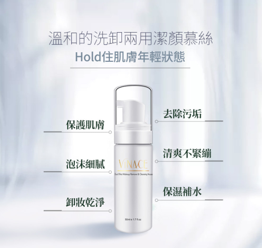 『ViNACE米爾娜斯』雙效洗卸顏慕絲一瓶就能達成多種功效